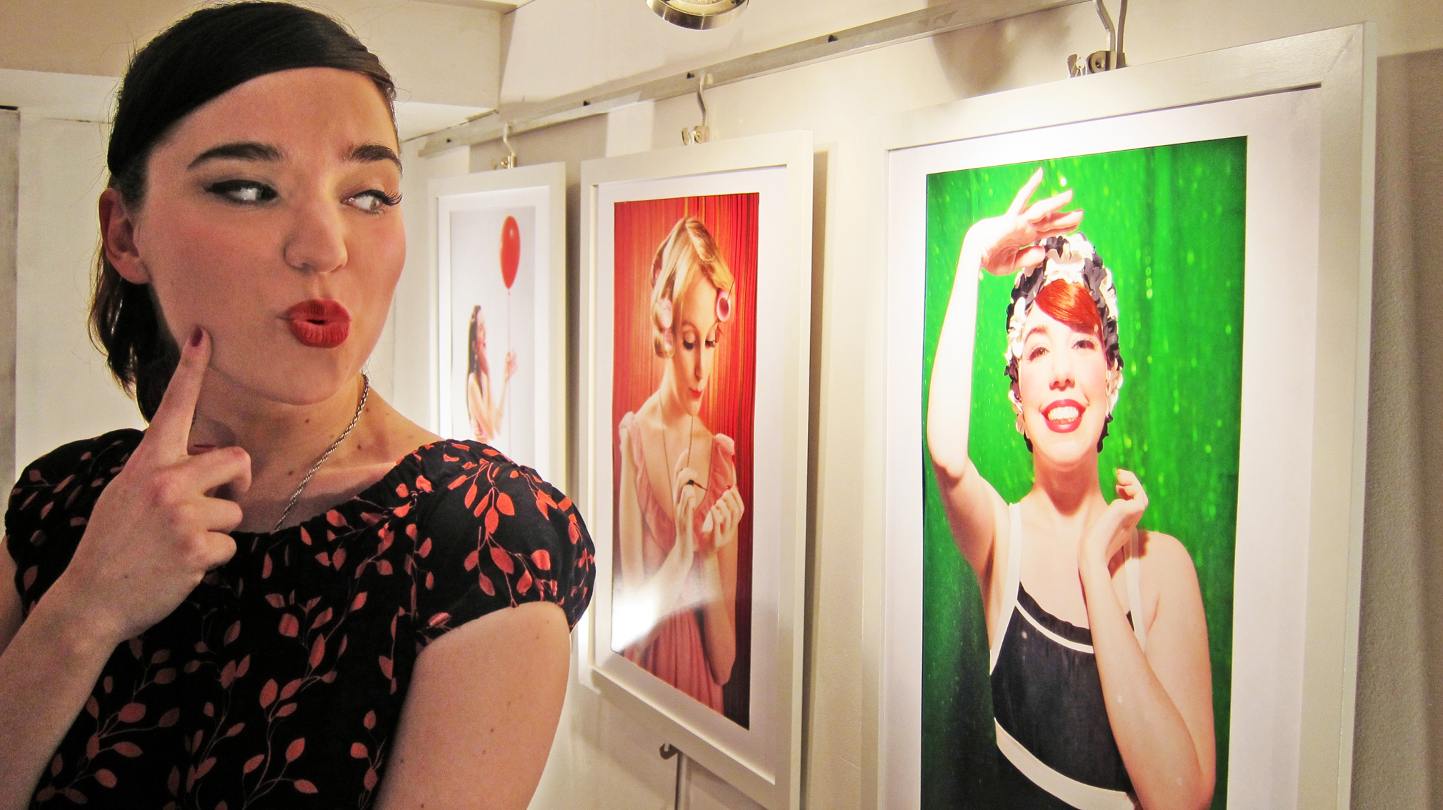 Difficile de ne pas se retenir dès les premières notes de la chanson « Be My Baby » des Ronettes : « Eh ! C’est la musique de Dirty Danciiing !! » … Heureusement, l’ambiance du salon de coiffure Bubble Factory n’est pas au mélodrame. C’est même le lieu parfait pour exposer des photos à la fois superficielles et profondes : « Le sourire niais des femmes mêlé aux tatouages, c’est un beau contraste, affirme Emilie Stisi. C’est toujours plus drôle s’il y a contraste ! ». Cette jeune photographe de 21 ans expose pour la première fois une série de clichés qu’elle obtient avec le minimum vital : le plus souvent, deux torches, sa fenêtre, des vêtements achetés aux puces, quelques façonneurs de lumière. Le résultat est néanmoins surprenant de technicité : « Au Ce3p [ndlr : école de photographie], tu prends conscience de la nécessité d’avoir un bon matériel. Si tu as l’image en tête, tu dois avoir les compétences techniques pour la mettre en forme. Il n’y a pas de place pour la surprise. » Mais la présence d’un clown rétro et d’une fille blafarde en bigoudis, ne fait-il pas tache parmi ces autres clichés aux angles si bien arrondis ? « J’ai toujours préféré les personnages du quotidien plutôt aux archétypes. J’adore aussi les freaks, tout ce qui est marginal … » Les couleurs piquent aux yeux, le côté un peu macabre aussi, qui se devine aisément dans ces sourires émail diamant : « C’est ironique bien sûr. En même temps, les gens à cette époque étaient vraiment heureux de consommer. Ça avait une part de merveilleux. »