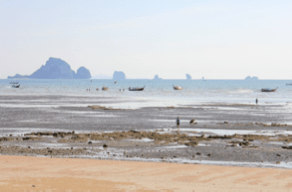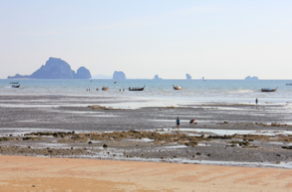 Bon, il est temps de prendre le bus cette fois-ci pour visiter les iles paradisiaques du Sud. Krabi … comment ne pas tomber amoureux de ce paysage. Des routes de terre bordée de forêts sauvages avec des palmiers, des fougères, des champs d’ananas et au bout … la mer. Une carte postale juste en face de moi, l’eau bleue corail, si transparente que l’on aperçoit les poissons. A l’horizon, on peut apercevoir des îlots qui sortent de la mer. En tant que cinéphile qui se respecte, j’avais le film La plage qui défilait sous mes yeux. Et la cerise sur le gâteau ? Les bars longeant la plage desquels sortent quelques notes de reggae.