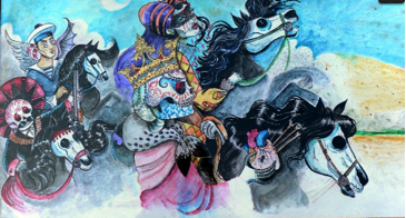 De Katarzyna Widmanska à Tim Roosen, en passant par Leslie Bloquert et Ray Caesar, l’exposition rend compte du goût prononcé du cabinet pour les mouvements américains tels que le pop surréalisme qui, en mêlant rêve et cauchemar, laisse un parfum enivrant d’ambiguïté. Pour l’illustratrice Marie Meier, le sujet de l’exposition lui a donné l’occasion d’intégrer ses influences médiévales (voir le tableau sur les chevaliers de l’Apocalypse) tout en privilégiant une imagerie « underground », celle des freak shows et des tatouages : « Quand Thierry Ruby m’a demandé de faire quelque chose pour l’exposition, j’ai décidé d’opter pour le tableau, qui est un medium plus charnel, raconte Marie Meier. A travers le tableau, on raconte une histoire, comme au Moyen-Âge où la plupart des gens ne savaient pas lire. Et comme je suis proche du surréalisme, mes peintures sont chargées de symbolique. C’est un travail très personnel. » Ainsi, pour les curieux comme pour les artistes, le pari de Thierry Ruby semble réussi.