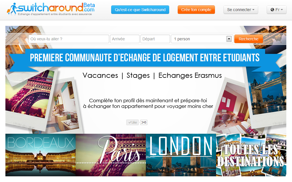 http://www.Switcharound.com est la première communauté qui permet aux étudiants d’échanger leur appartement pour voyager moins