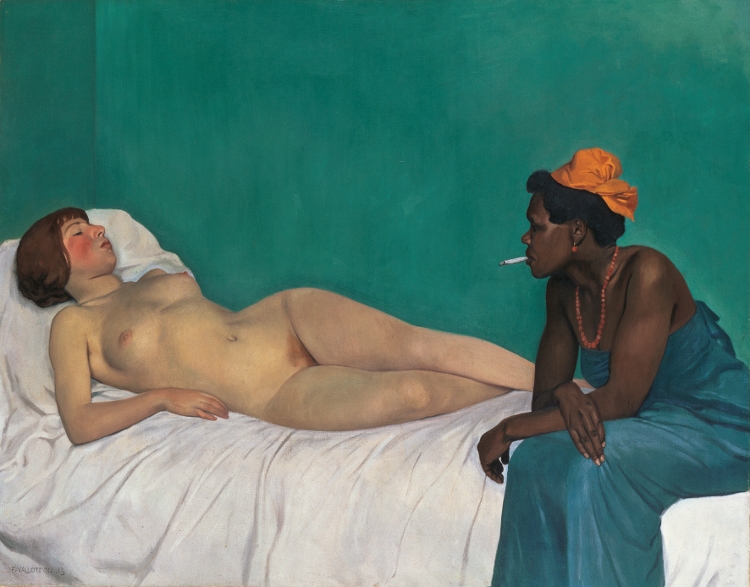 Rouge pour le ciel ou les murs, blanc pour la femme ou l’horizon, bleu pour la mer ou le vêtement, Félix Vallotton est un peintre qui a choisi ses tons, les travaille, les affine, anime de son pinceau, chef d’orchestre silencieux, mille et une variations d’un rose pour une hanche ou pour un vallon. Au détour des formes, des couleurs, on reconnait un corps, devine un paysage au cœur duquel se joue dans les contours sages, une sensualité bienveillante, subtile.