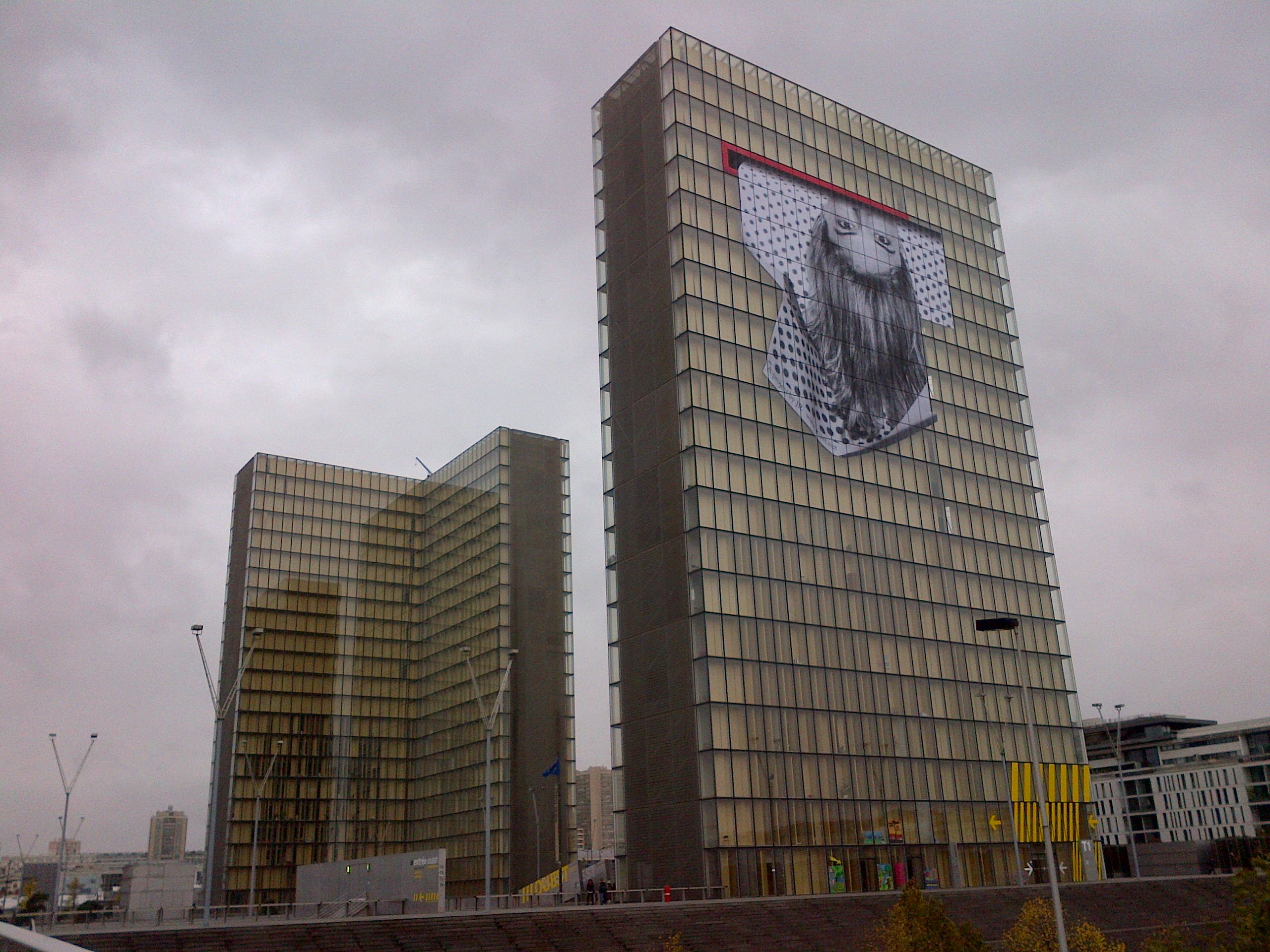 Il revient à Paris au centre Pompidou en 2011 pour son grand projet Inside Out, puis à nouveau en 2013. En effet, pour ceux qui ont eu la chance de l’apercevoir dans le quartier de la BNF entre le 6 et 12 novembre, JR invitait les gens à venir se faire prendre en photo pour ensuite en faire un gigantesque collage. Brillant artiste repoussant constamment les limites de projets artistiques grandioses, JR ne cesse de bousculer l’univers artistique en confrontant la vie réelle et le monde de l’art.