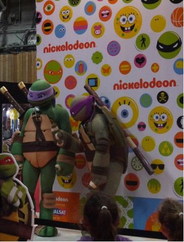 A quelques pas, on tombait nez à nez avec Bob l’éponge, Leonardo ou Michelangelo. Et oui, bienvenue au stand Nickelodeon ! Ici, tout est aux couleurs de la chaîne télé qui diffuse dessins-animés et séries pour jeunes adolescents. De nombreuses jeunes filles en uniformes géraient des plateformes d’activités : lancer de brioches sur figurines en carton, tirs aux pistolets sur cible étaient au programme.