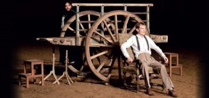 Pour sa mise en scène de l’œuvre de Boulgakov, Ronan Rivière a pris le parti de créer une atmosphère intimiste, donnant aux spectateurs l’agréable impression d’être redevenus des enfants écoutant un conte de fée. Tous les éléments semblent contribuer à ce que cette intimité et cette convivialité s’installent. Les comédiens sont peu nombreux sur scène, et seuls deux d’entre eux prennent la parole ; le décor est simple mais représente efficacement la vie nomade de l’auteur, avec seulement une charrette et un fauteuil, et, entre les scènes, ces deux éléments sont déplacés, sur un fond musical, de sorte à représenter de nouveaux lieux.