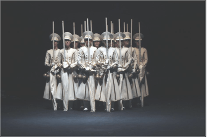 Ensuite parce que pendant la moitié du spectacle, un écran se dresse entre la scène et la salle, permettant de projeter des mots et de créer une image floue, propre à l’esthétique de Castellucci.