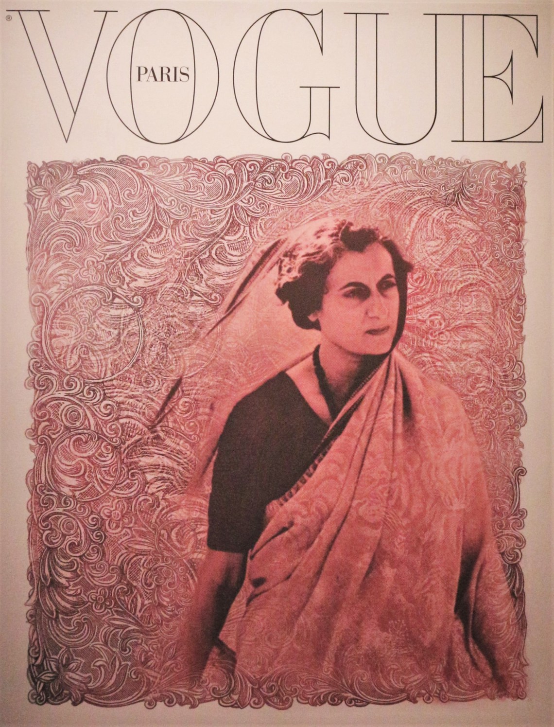 Pour quelques jours, la Monnaie de Paris accueille une jolie petite exposition d’artistes contemporains invités à recouvrir une couverture vierge de Vogue avec une femme inspirante. Quelque peu hésitante quant au fait que l’exposition soit organisée par le célébrissime magazine féminin dont les préoccupations me semblent assez loin – même parfois opposées – à mes convictions personnelles, l’idée d’aller voir des portraits de femmes exposés dans une galerie d’art ne me déplaisait pas pour autant ; et j’étais déjà même prête à écrire un petit billet d’humeur (ou peut être un manifeste) sur la place de la femme dans les représentations artistiques et dans l’espace publique. J’étais un peu mauvaise langue. Déjà l’exposition « Artistes à la Une, Togeth’her » est organisée avec le comité ONU Femmes France dans une visée caritative pour soutenir l’autonomisation des femmes et l’égalité des sexes. Ensuite Vogue met en effet le plus souvent à sa Une des représentations de femmes célèbres – et invite également différents artistes à réaliser ses couvertures : on retrouve ainsi des portraits de Catherine Deneuve, Jane Birkin, Brigitte Bardot, Naomi Campbell, Uma Thurman, Kate Moss, Sofia Coppola, ou encore Beyoncé, et aussi Caroline de Monaco par Andy Warhol dans son numéro de décembre 1983 ou encore Marilyn Monroe par Salvador Dali dans celui de Décembre 1971. Ces femmes sont certainement talentueuses et ont marqué leur époque mais leur joli teint effet bonne mine sur papier glacé ne semble pas forcément renvoyer à autre chose qu’à l’image elle même – autrement dit, et pour ne pas faire de jeu de mot facile, elles font la couverture car elles sont en vogue. Mais on peut quand même remarquer que le numéro de février 2019 met à l’honneur Erika Linder (et en grosses lettres jaunes « L’éclat unisexe ») ; et on peut toujours se rappeler que Frida Kahlo avait été en première page de Vogue México en 2012 et se réjouir de retrouver cette figure parmi les fausses couvertures de la présente exposition. Parce que en effet, ce sont beaucoup des femmes fortes, indépendantes et engagées qui ont été choisies comme femmes inspirantes et emblématiques par les artistes qui avaient carte blanche. On retrouve ainsi des portraits de Hannah Arendt, Cléopâtre, Indira Gandhi, Assa Traoré ou, plus surprenant, Margaret Tatcher – après quand on y pense la couverture de Vogue US du numéro de février 2005 mettait à l’honneur Mélanie Trump en robe de mariée ; mais pas de panique, aucun portrait de Marine Le Pen ne figure dans cette exposition !!