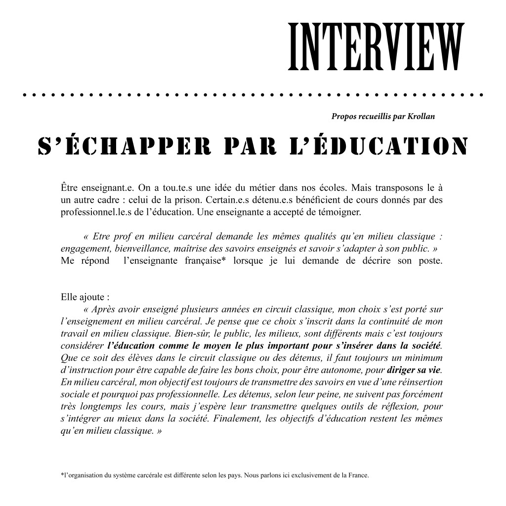 Pour la deuxième édition de la capsule Nouvelles Vagues, nous avons choisis un sujet quelque peu épineux mais qui nous semblait, déjà pertinent, et surtout nécessaire à aborder. La prison. On vous laisse découvrir cette nouvelle capsule et si vous voulez participer à celle du mois prochain, n’hésitez pas à nous écrire à l’adresse suivante : journalparis3@gmail.com