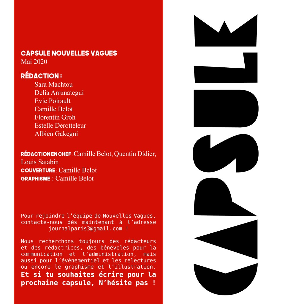 C’est toujours dans les circonstances exceptionnelles que nous connaissons tou.te.s que nous publions cette nouvelle capsule sur la thématique, justement et finalement, du (dé)confinement. On espère que vous avez réussi à affronter cette période et que pour le mieux de votre coté. En vous souhaitant comme toujours une très bonne lecture ; on reste attentif à vos retours ; et si vous souhaitez contribuer à la prochaine édition, n’hésitez pas à envoyer un petit mail à cette adresse : journalparis3@gmail.com