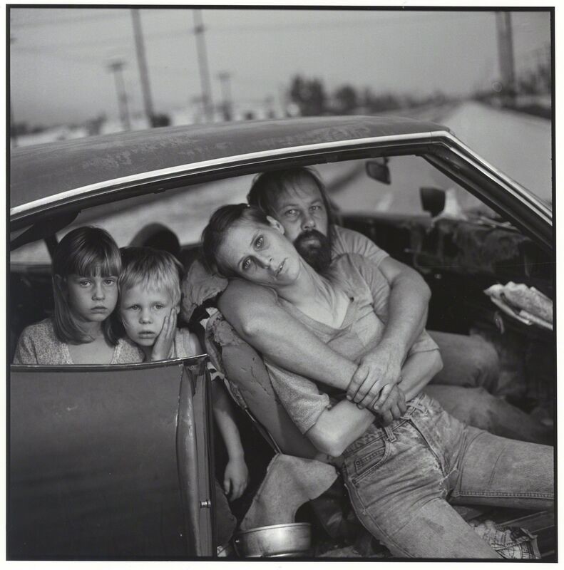 Plus tard, cette idée de montrer une population Américaine délaissée reviendra avec la série documentant la famille Damm. Mary Ellen Mark les rencontre en Californie avec qui elle vivra 10 jours pour le magazine Life. Ils vivent dans leur voiture à quatre, les enfants arborent un regard triste, qu’on interpréterait comme désespéré. Là est l’importance du travail de Mark, peut-être de la photo en général, une mise au premier plan de la misère et des marginaux pourtant si absente des médias traditionnels, « loin de la société dominante et vers ses franges plus intéressantes, souvent troubles » (citation de Andrew Long sur Mary Ellen Mark).