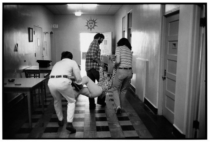Son travail, c’est aussi la mise en lumière d’une Amérique des années 1970, pauvre et malade, aussi dû à la désinstitutionalisation des patients. Beaucoup de patients psychiatriques se retrouvent lâchés dans une société qui les rejette, beaucoup tombent alors dans la précarité et les addictions. Les bouleversantes photos de l’institut psychiatrique dans l’Oregon nous plonge dans cette univers sordide, l’idée de ce projet lui étant venue lorsqu’elle photographiait le plateau du film « Vol au-dessus d’un nid de coucou » de Milos Forman.