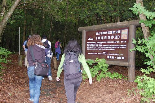 Certains sentiers sont ouverts au public, d’autres non sous prétexte qu’il est facile de s’y perdre. Pourtant, s’il faut éviter de s’écarter des sentiers prédéfinis c’est aussi car en général, l’énorme majorité des Japonais s’en éloignent pour se suicider. Inversement, le tourisme noir invite à dépasser ces chemins balisés pour explorer la végétation et ses étranges fruits. Il est très difficile de se repérer dans ce labyrinthe végétal tant il y a de densité et donc très peu de points de repère. De plus, le magma qui compose son sol dérègle les boussoles qui ne sont pas fiables à tous les endroits de la forêt. Par ailleurs, c’est ce même magma qui rend difficile une exploration hors des sentiers battus. Effectivement, le sol n’est pas droit et la végétation a dû pousser de travers pour se développer, laissant alors les racines apparentes. Il y a donc un risque de blessure, à la cheville dans le meilleur des cas, mais également un risque de mort à cause de crevasses de plusieurs mètres de profondeur, dissimulées entre les feuilles mortes et la mousse.