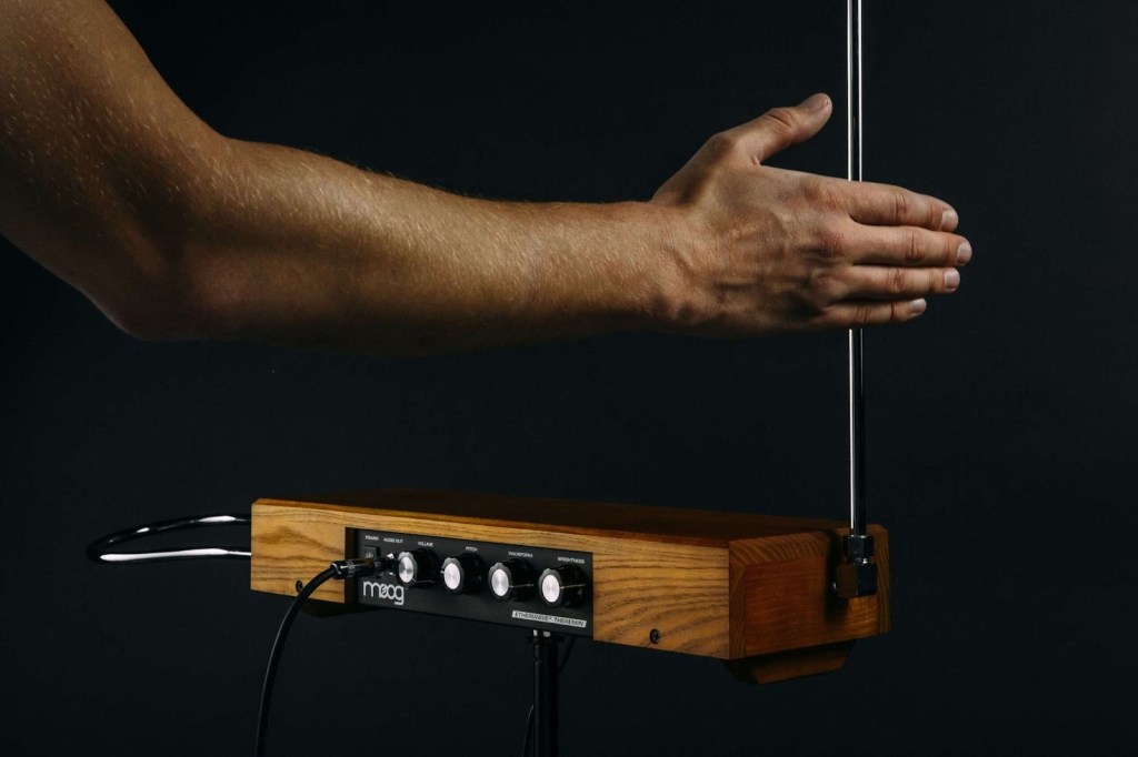 Pour son fonctionnement, le Thérémine utilise de l’électricité pour créer deux circuits primaires dans ses deux antennes qui contrôlent le pitch et la hauteur de la note avec la verticale et le volume de la note avec celle en forme de boucle. Le corps du musicien joue ainsi le rôle d’un organisme électromagnétique; avec ses mains, le musicien produit de la musique sans toucher l’instrument, la main droite contrôle l’antenne verticale, plus elle y est proche plus le son devient aigu et plus elle s’éloigne plus le son devient grave. Quant à la main gauche, le musicien la positionne dans la boucle pour couper le son, et en s’éloignant de l’antenne, elle module le volume sonore.