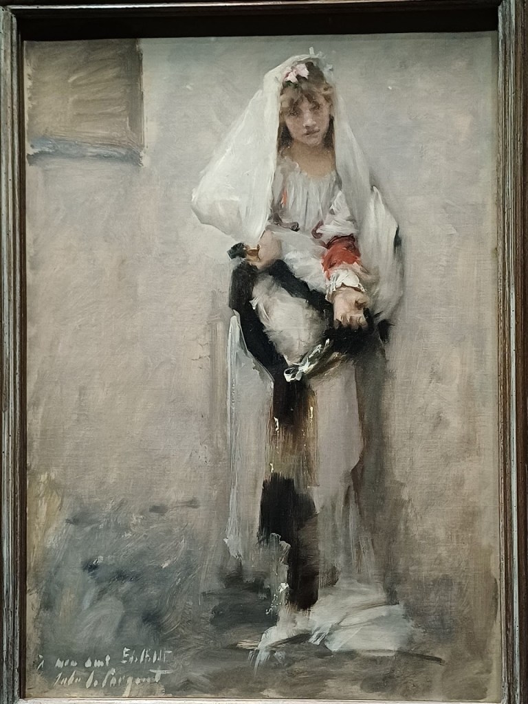 En effet, Sargent sait explorer les techniques, tout en connaissant ses propres limites. Certains éléments dans la composition de ses tableaux sont essentiels à l’expression de son style. On retrouve l’importance des valeurs tonales, ce qui signifie “la variation d’une couleur selon le degré de blanc ou de noir ajouté ce qui permet de donner une unité organique” (selon Maureen Marozeau, historienne de l’art et journaliste au Journal des arts). Il fait donc le choix, conscient, de s’orienter vers une certaine rangée de couleurs pour chaque tableau, en prenant en compte leur composition ainsi que la tenue du modèle. Il est également connu pour sa rapidité à réaliser une œuvre, mais aussi pour sa “touche enlevée”, ce geste léger du pinceau qui donne cette impression de flou, caractéristique de la peinture aquarelle. Mais pour l’artiste, ce geste est un geste précis et pensé en amont, il joue avec les effets de flou et de légèreté encore une fois en pleine conscience.
