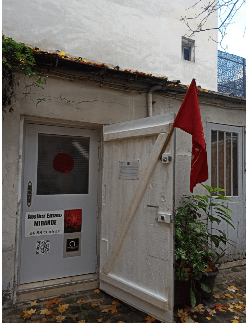 Caché entre les ruelles de Montmartre, se trouve l’atelier de Christophe Mirande, et dès qu’il reçoit un appel, il se dépêche d’ouvrir le portillon pour les visiteurs. Après, il regarde curieusement dans la rue, au cas où quelqu’un d’autre arrive à son exposition. Il n’y en a pas et il amène les venues à travers le labyrinthe de cours vers son lieu de travail. Une blanche porte de service avec un grand cercle rouge en émail au milieu d’une fenêtre s’invite dans un studio compact, qui lui rappelle de son chemin unique : « Chaque matin, quand j’arrive ici, je me dis que j’ai une chance folle ».
