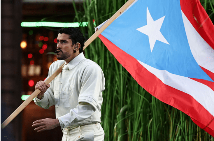 Le Porto Rico, pays originaire de Bad Bunny, est le noyau de la prestation en l’honneur des cultures latines. L’artiste ne cherche pas à prouver la place de l’Amérique latine comme légitime, il expose au contraire, le regard sur sa valeur intrinsèque. Le quotidien suffit, la scénographie présente Vega Beja, le quartier de Bad Bunny au Porto Rico dans ses stands de tacos, autour de quelques jeux de dominos. En présence des Jibaros, fermiers portoricains, sur les champs de cannes à sucre, sans oublier les pava, chapeaux traditionnels. Les danses perreo valsent sur le son d’une Amérique unifiée, une Amérique au pluriel qui ne justifie pas son existence, où être, dans la simplicité de son quotidien, est déjà suffisant.